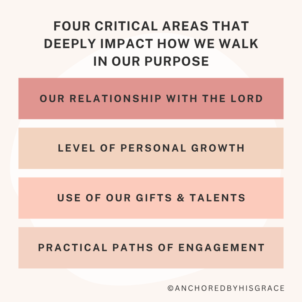 I think the more we grow in these areas, the more we can be intentional, focused, and consistent in walking in our purpose.